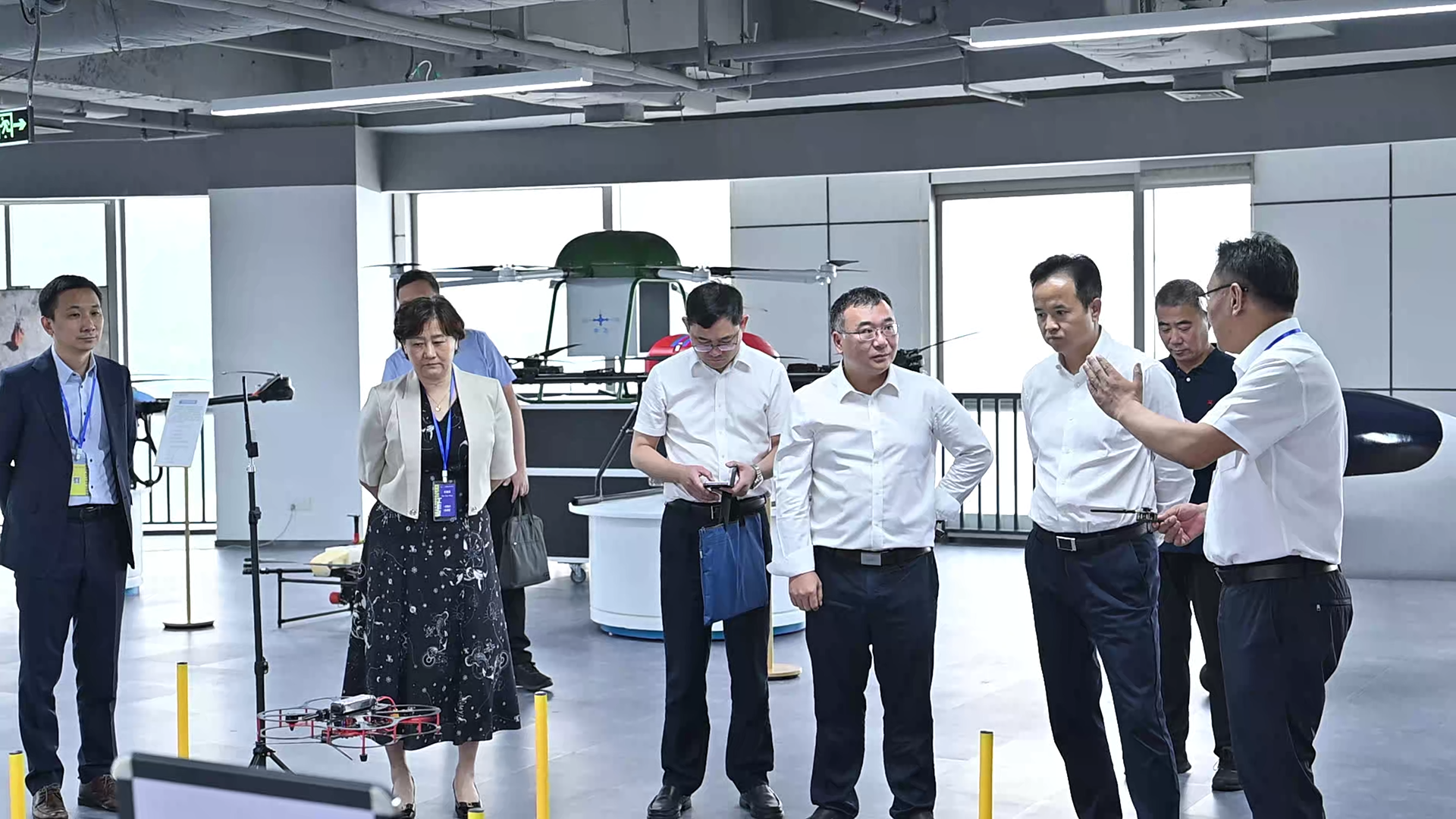随后,领导们观看了包括我司微小型无人作战系统、垂直起降固定翼无人机、多旋翼无人机、固定翼无人机等多功能无人机在行业应用中的演示,领导们就无人机在当前复杂环境下的作业能力、安全性展开讨论。